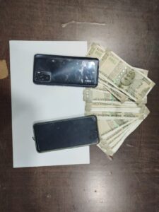 एवं राजस्थान रॉयल के राजस्थान रॉयल के मध्य चल रहे आईपीएल 20-20 मैच में मोबाइल एवं पर्ची में रुपए पैसे का सट्टा पट्टी लिख रहे हैं ,सूचना पर हमराज स्टाफ एवं गवाह के मौके जाकर रेड करने पर दो व्यक्ति मोबाइल एवं कागज में अंको से सट्टा पट्टी लिखते हुए मिले जिनसे पूछताछ करने पर अपना अपना नाम यश तिलवानी पिता विजय तिलवानी उम्र 24 वर्ष पता तेलीपारा गली नंबर 1 तथा दूसरा अपना नाम प्रवीण मंगलानी पिता इंद्र कुमार मंगलानी उम्र 25 वर्ष साकिन तेलीपारा बिलासपुर का रहने वाला बताएं जिससे उक्त आरोपियों के कब्जे से दोनग मोबाइल रेडमी एवं विवो कंपनी का जिसमें अंक लिखा हुआ था , सट्टा पट्टी पर्ची जिसमें दो लाख का सट्टा पट्टी लिखी थी नगदी रकम 12000 को जप्त कर आरोपीयों के खिलाफ 4 क