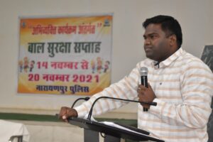 नारायणपुर 14 नवंबर 2021। पुलिस मुख्यालय, रायपुर के निर्देशानुसार आईपीएस गिरिजा शंकर जायसवाल पुलिस अधीक्षक नारायणपुर के नेतृत्व में नारायणपुर पुलिस द्वारा बच्चों के संरक्षण एवं सुरक्षा हेतु बालकों, उनके अभिभावकों और आम नागरिकों को जागरूक करने के उद्देश्य से आज दिनांक 14 नवंबर 2021 को डीआरजी ग्रेट हाॅल, नारायणपुर बाल सुरक्षा सप्ताह का शुभारंभ किया गया है। इस दौरान जिला पंचायत अध्यक्ष श्यामबति नेताम, नगर पालिका अध्यक्ष सुनीता मांझी, देवनाथ उसेण्डी, गुड्डु राव, संजय राय, अतिरिक्त पुलिस अधीक्षक नीरज चन्द्राकर, उप पुलिस अधीक्षक उन्न्ति ठाकुर, उप पुलिस अधीक्षक प्रशांत खाण्डे, उप पुलिस अधीक्षक मोनिका मरावी, रक्षित निरीक्षक दीपक साव, पुलिस विभाग के अन्य अधिकारी,कर्मचारी, प्रतिभावान खिलाड़ी, छात्र,छात्राएं और शिक्षकगण उपस्थित रहे।