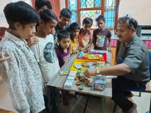 दिये,फटाखे,, और टॉफी दिये गए,, दवाई वाले राजू अग्रवाल, मनोज दमानी अभिजीत रिंकू मित्रा, जी ने बच्चो को सामग्री उपलब्ध करवाई,,समर्पित परिवार के, महेंद्र कौशिक, निशा