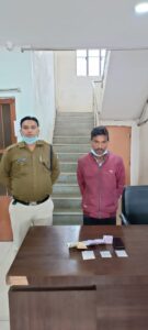 पाल उम्र 31 साल निवासी वार्ड क्रमांक 11 विकास नगर थाना चकरभाठा जिला बिलासपुर छ0ग0 के रहना बताया आरोपी का तलाशी लेने पर आरोपी के कब्जे से पेन्ट की जेब से तीन नग सफेद कागज के पैकेट में भूरा पाउडर जैसा पदार्थ (नशीला ब्राउन शुगर) करीबन 09-10 ग्राम ,कीमती करीब 50,000 रूपये एवं नगदी रकम 1100 रूपये तथा एक नग सेमसंग कंपनी का स्क्रीनटच मोबाईल मिला जिसे मौके पर विधिवत जप्ती तथा अन्य कार्यवाही की गयी। आरोपी का यह कृत्य धारा 21 एनडीपीएस एक्ट के अतर्गत दण्डनीय अपराध होना पाये जाने से आरोपी को हिरासत में लेकर अपराध पंजीबद्ध कर विवेचना में लिया गया है आरोपी को विधिवत गिरफ्तारी का कारण बताते हुये गिरफ्तार कर गिरफ्तारी की सूचना परिजनो की देकर आरोपी को न्यायिक रिमांड में भेजा गया हैा