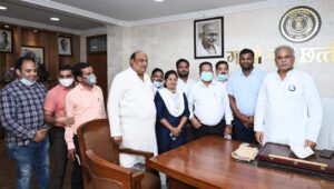 राजस्व मंत्री माननीय जय सिंह अग्रवाल की सकारात्मक पहल व उपस्थिति में कनिष्ठ प्रशासनिक सेवा संघ के प्रांताध्यक्ष कृष्ण कुमार लहरे की अध्यक्षता में प्रान्त कार्यकारिणी ने मुख्यमंत्री माननीय भूपेश बघेल से सौजन्य मुलाकात कर उन्हें तहसीलदारों की मांग सहित विभिन्न कठिनाईयों से अवगत कराया जिस पर मुख्यमंत्री महोदय ने जून के अंतिम सप्ताह में तहसीलदार नायब तहसीलदारों के महाधिवेशन में शामिल होने सहमति दी। विदित हो कि विगत दिवस राजस्व मामलों के त्वरित निराकरण में आने वाले दिक्कतों सहित पुराने लंबित मांगों से अवगत कराने हेतु प्रदेश के सभी जिलों से तहसीलदारों ने 10 सूत्रीय मांग माननीय मुख्यमंत्री महोदय के नाम ज्ञापन दिया था जिस पर मुख्यमंत्री महोदय ने त्वरित संज्ञान लेते हुए निराकरण हेतु संघ के सदस्यों को आश्वाशन दिया है। संघ की ओर से प्रांताध्यक्ष कृष्ण कुमार लहरे सहित संध्या नामदेव , प्रकाश चंद्र साहू , लखेश्वर किरण , सोनू अग्रवाल , रविशंकर राठौर , पंचराम सलामे एवं अन्य उपस्थित रहे।
