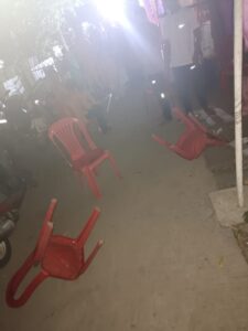 यह आयोजन 17 मई से चालू हुआ है,और 24 मई तक चलेगा।जिसकी विधिवत अनुमति लेकर इस आयोजन को किया जा रहा है।लेकिन इसी बीच आज सोमवार को रात साढ़े आठ बजे के लगभग जब पंडाल में आरती चल रही थी उसी समय पुलिस लाइन के रक्षित निरीक्षक धनेंद्र धुर्व आ धमके और पंडाल के अंदर लोगो के साथ अभद्रता करते हुए गाली गलौच करते हुए अपना रौब दिखाते हुए पंडाल के अंदर रखी कुर्सी को फेक दिए साथ ही पण्डाल के बाहर पानी से भरी बाल्टी को लात मारते हुए, लोगो को धमकी देते हुए यह भी कह दिए कि ऐसे आयोजन को तत्काल बंद कर दो नही तो पंडाल उखाड़ कर फेंक दूंगा।इस घटना के बाद से इस कार्यक्रम स्थल में आये श्रद्धालुओं ने रक्षित निरीक्षक के विषय मे तरह तरह की बाते करते नजर आए।और धार्मिक आयोजन में रक्षित निरीक्षक की ऐसी हरकत से काफी रोष भी देखने को मिला।लेकिन इस पूरे मामले में रक्षित निरीक्षक ने अपनी सफाई देते हुए अपने ऊपर लगे आरोपो को निराधार बताया।