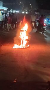 आपको बता दे कि आज उस समय सरकण्डा में हड़कंप मच गया जब लोगो ने एक बाइक को बीच सड़क पर जलते हुए देखा बीच सड़क में खड़ी मोटरसाइकिल को युवक ने आग के हवाले कर मौके से फरार हो गया है । फील हाल सरकण्डा पुलिस मामले की जांच में जुटी हुई है।