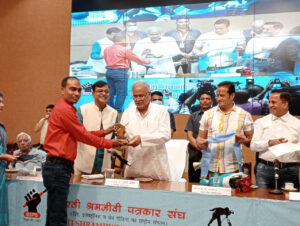 बिलासपुर. Cgatoznews भारतीय श्रमजीवी पत्रकार संघ के बैनर तले आज रायपुर के न्यू सर्किट हाउस में पत्रकारों एवं कैमरामैन का सम्मान समारोह आयोजित किया गया जहां प्रदेशभर से आए पत्रकारों ने एकजुट होकर अपनी एकता का परिचय दिया कार्यक्रम के मुख्य अतिथि रहे छत्तीसगढ़ के मुख्यमंत्री श्री भूपेश बघेल जिन्होंने अपने हाथों से पत्रकारों को मोमेंटो एवं प्रमाण पत्र देकर उनका सम्मान किया… यहां आपको को बता दें कि इस आयोजन के पीछे भारतीय श्रमजीवी पत्रकार