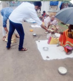 में जरूरतमंद लोगों को फल वितरण कर नाश्ता कराया गया।