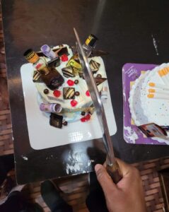 घातक जानलेवा हथियार खुखरी से बर्थडे केक काटने वाली इस फोटो में हाथ में खुखरी लिए दिख रहा ये शख्स सरकंडा क्षेत्र का एक कबाड़ व्यवसायी है। सूत्र बताते हैं कि ये सरकंडा के कबाड़ व्यवसायी संतोष रजक के बर्थडे पार्टी की फोटो है। इस फोटो में कबाड़ी संतोष रजक हाथ में धारदार हथियार खुखरी लिए देखा जा सकता है।