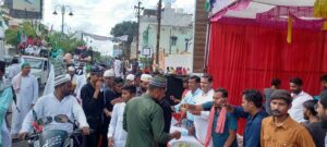 बिलासपुर. Cgatoznews..ईद मिलाद उन नबी के मौके पर शहर में आज जुलूस निकाला गया। जिसका शहर में जगह-जगह स्वागत किया गया । जुलूस का स्वागत लिंक रोड सीएमडी कॉलेज के पास छत्तीसगढ़ योग आयोग सदस्य रविंद्र सिंह युवा नेता आशीष गोयल संजय चौहान राज चौहान शहर उपाध्यक्ष युवा कांग्रेस सूरज प्रधान आदि साथियों के द्वारा भव्य रूप में किया गया । साथ ही साथ हलवा बिस्किट व मिठाई का भी वितरण किया गया ।इस अवसर पर मुस्लिम भाइयों को गले लगाकर जहां ईद मिलाद उन नबी की बधाई व शुभकामनाएं हिंदू भाइयों के द्वारा दिया गया वहीं फूल माला व पटाखों के साथ छत्तीसगढ़ प्रदेश कांग्रेस कमेटी के सचिव रविंद्र सिंह आशीष गोयल राज चौहान युवा
