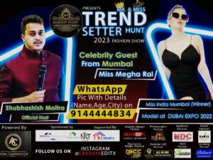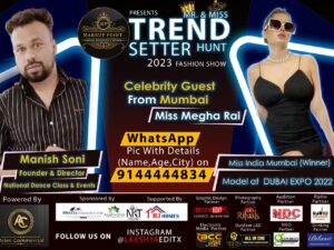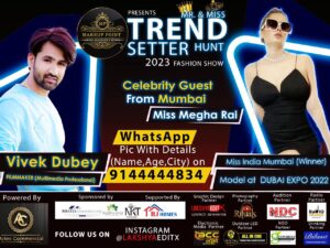 बिलासपुर – cgatoznews..…फैशन इंडस्ट्री में काफी कम समय में नाम कमाने वाली मिस इंडिया मुंबई “मेघा राय” जल्द ही नेक्स्ट मेगा मॉडल फैशन शो कॉम्पिटिशन में बतौर जज के रूप में शिरकत करेंगी। हाल ही में मिस्टर एंड मिस “ट्रेंडसेटर” 2023 फैशन शो इवेंट का ऑफिशियल पोस्टर लॉच लिया गया है। कॉम्पिटिशन के लिए पहला ऑडिशन 4 और 5 फरवरी को एनडीसी स्टूडियो में आयोजित किया जाएगा। बताया जा रहा है