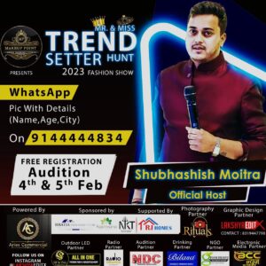 कि यह प्रदेश का सबसे बड़ा मॉडलिंग और डिजाइनर हंट होगा। इसके ज़रिए न सिर्फ टैलेंट दिखाने वालो को प्लेटफार्म दिया जा रहा है बल्कि कंटेंस्टेंट को फैशन और मॉडलिंग इंडस्ट्री के मुताबिक ढलने में भी मदद की जाएगी। यह पूरा इवेंट मेकअप पॉइंट द्वारा ऑर्गेनाइज किया जा रहा है। आपको बता दे की मिस्टर एंड मिस “ट्रेंडसेटर” फैशन शो के सभी ऑफिशियल पोस्टर