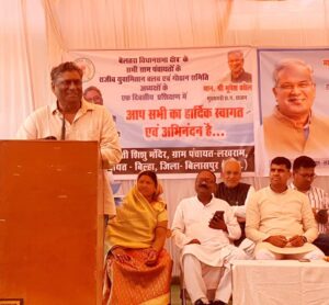 जिला पंचायत सभापति अंकित गौरहा ने भी उपस्थित लोगों को संबोधित किया। उन्होने बताया कि भूपेश है तो हर समस्या का समाधान मुमकिन है। हमें खुशी है कि मुख्यमंत्री के राजनैतिक सलाहकार हमारे बीच आए और उपस्थित लोगों की समस्याओं को ना केवल गंभीरता से सुना। बल्कि जल्द से जल्द समस्याओं को दूर करने का आश्वासन भी दिया है।