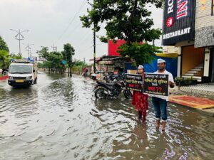 सड़क पर भरे पानी में उतर कर किया अनोखा प्रदर्शन