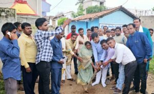 बिलासपुर -:- cgatoznews..बेलतरा विधानसभा क्षेत्र के ग्राम पंचायत लोफंदी में स्थानीय ग्रामवासियों के समस्या के निराकरण हेतु स्वीकृत 200 मीटर सीसी रोड लागत 5 लाख रूपए के निर्माण कार्यों का जिला पंचायत सभापति अंकित गौरहा ने भूमिपूजन किया।
