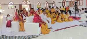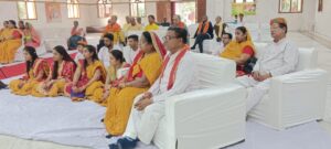 प्रथम दिन की कथा समाप्त होने के बाद सभी ने मिलकर आरती की और उसके बाद प्रसाद वितरण किया गया।