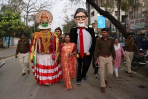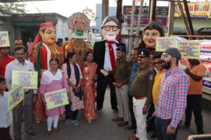 बिलासपुर.. Cgatoznews…जब डीएसपी यातायात पुलिस ख़ुद सड़क में चलकर कठपुतलियों के साथ यातायात के नियम और सुरक्षा की जानकारी देने निकले लोगों ने जमकर सराहना की कठपुतलियों की ख़ूबसूरती तपस्या और कथककली और मृगनयनी और विशालकाय कठपुतली अमिताभ बच्चन की देखकर लोग आश्चर्य चकित थे लोगों को यातायात सुरक्षा के नियमों और उल्लंघन करने पर चालान काटने और बिलासपुर शहर में कई