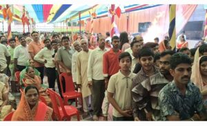 दुर्ग। पुलगांव नाका नवकार परिसर स्थित श्री रामदेव बाबा दरबार में आयोजित 10 दिवसीय भादवा मेला में अंतिम दिन शुक्रवार को श्रद्धालुओं की बड़ी संख्या में भीड़ उमड़ी। दरबार में सुबह से ही भजन कीर्तन की गूंज रही। जिसकी धुन में नाच गाकर श्रद्धालु श्री रामदेव बाबा के प्रति अपनी श्रद्धा-भक्ति प्रगट करते रहे। इस दौरान गुरुदेव सोहनलाल बापजी (चालीसगांव महाराष्ट्र) की शिष्या भक्तमाता शांतादेवी बापजी से आशीर्वाद लेने श्रद्धालुओं की दरबार में कतारे लगी रही।