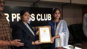 इसी तारतम में आज अजीता पांडे को बिलासपुर प्रेस क्लब मे सोनल राजेश शर्मा जो कि अधिकृत संवादाता गोल्डन बुक ऑफ रिकॉर्ड बिलासपुर की है उनके द्वारा आज का सम्मान सर्टिफिकेट दिया गया मीडिया से बात करते हुए अजीता पांडे ने सांपों से जुड़ी कई प्रजातियों के बारे में जानकारी दी एवं उन्हें रिलीज करने के तरीकों को भी बताया…..