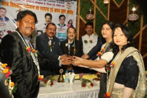 विशिष्ट अतिथि प्रथम वाइस डिस्ट्रिक्ट गवर्नर दिलीप भंडारी ने नई टीम के कार्यकाल को वैभवशाली होने की शुभकामनाएं देते हुए कहा कि वे ड्रीम प्रोजेक्ट पर कार्य करें नए सदस्यों को सक्रिय करें विधायक शैलेश पांडे की धर्मपत्नी श्रीमती रितु पांडे ने श्रीमती ज्योत्सना के समर्पित सेवा संस्मरणओं को साझा किया चेयर पर्सन महेश अग्रवाल ने क्लब की नई चार्टर टीम को शुभकामनाएं व सहयोग देने की बात कही आशीष अग्रवाल ने भी सभा को संबोधित किया स्वर्गीय ज्योत्सना स्वर्णकार के पति जीआर चौहान ने लायंस क्लब के नामकरण पर भावुकता के साथ कहा कि ज्योत्सना के सेवा कर्म अब उनके जीवन का हिस्सा बन गए हैं यह क्लब अब उनके जीवंत रूप में स्थापित हुआ है उनका परिवार इस क्लब के हर कदम पर साथ रहेगा कार्यक्रम की शुरुआत में लायंस क्लब के जनक माल्विन जॉन स्वर्गीय श्रीमती ज्योत्सना स्वर्णकार की तस्वीर पर माल्यार्पण कर श्रद्धा सुमन अर्पित किए गए ध्वज वंदन लाइन सृष्टि अग्रवाल ने किया गणेश वंदन की मनमोहक प्रस्तुति बाल कलाकार अवनी मिश्रा ने दी सेजल अग्रवाल व आरती मौर्य ने स्वागत नृत्य कर शानदार प्रदर्शन किया स्वागत उद्बोधन में सचिव रेट ने कहा कि आज गुरु पूर्णिमा का पर्व के साथ-साथ ज्योत्सना की जयंती है और उनकी स्मृति में इस क्लब की स्थापना की गई शशि पर एक ने कहा कि ज्योत्सना जी का जीवन लायन वाद के प्रति समर्पित रहा है पीड़ित मानवता की सेवा में उनके अधूरे सपनों को यह क्लब पूरा करेगा उनकी यादें का वृतांत सुनाते हुए शशि कुछ क्षणों के लिए भावुक हो गए मुख्य अतिथि का परिचय मनीषा जी ने किया कार्यक्रम का सफल संचालन आशा व सपना सराफ ने किया चार्टर सचिव अलका अग्रवाल ने धन्यवाद ज्ञापित किया अतिथियों को स्मृति चिन्ह देकर चार्टर पदाधिकारियों ने सम्मानित किया