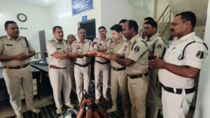 थाना प्रभारी प्रदीप आर्य के नेतृत्व में सकरी थाना में धूमधाम से मनाई गई शस्त्र पूजा