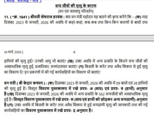 विधानसभा में विधायक श्रीमती शेषराज हरवंश द्वारा पूछे गए प्रश्न क्रमांक 1641 के उत्तर में वन विभाग ने दिसंबर 2023 से जनवरी 2026 के बीच 9 बाघ, 38 हाथी सहित कुल 562 वन्यजीवों की “अस्वाभाविक मौत” होने की जानकारी मय दस्तावेज सदन में सार्वजनिक रूप से दी थी । नागरिक द्वारा विधानसभा को वन्यजीवों की मौत से संबंधित दिए गए दस्तावेज मांगने पर वन विभाग ने सूचना का अधिकार की धारा 8(1)(क) का हवाला देकर दस्तावेज देने से यह कहकर मना कर दिया कि यह दस्तावेज प्रदान करना वन्यप्राणियों की सुरक्षा एवं वन्यप्राणी प्रबंधन रणनीति, गोपनीयता तथा शासन हित में नहीं है।
